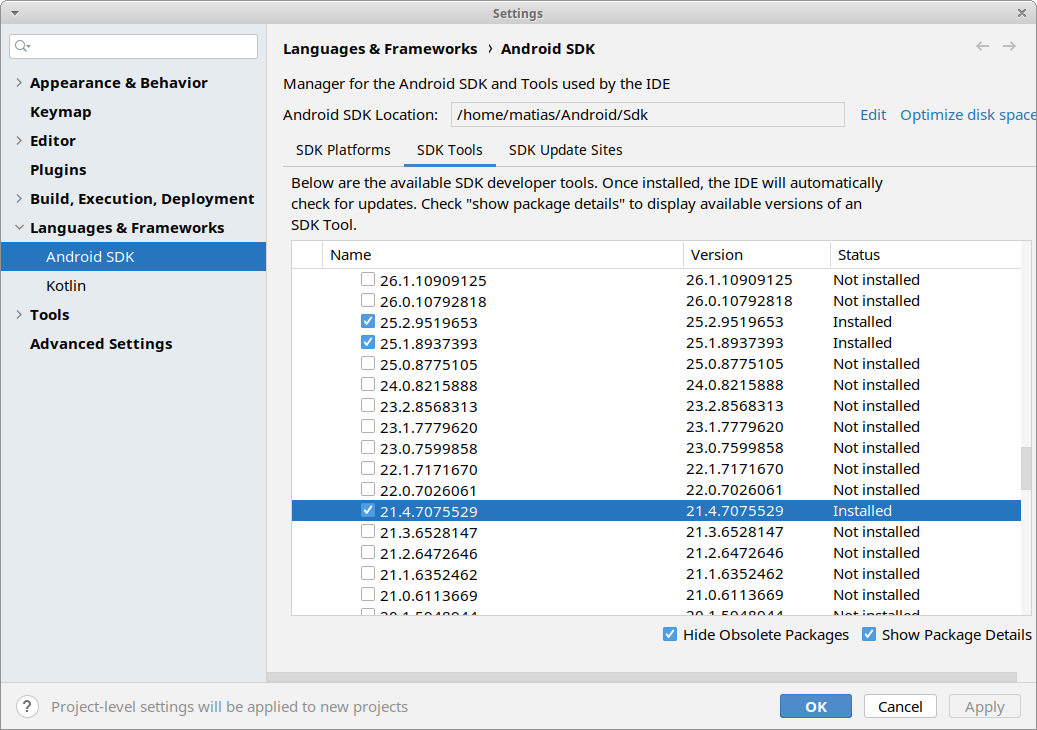 export ANDROID_HOME=/home/matias/Android/Sdk
